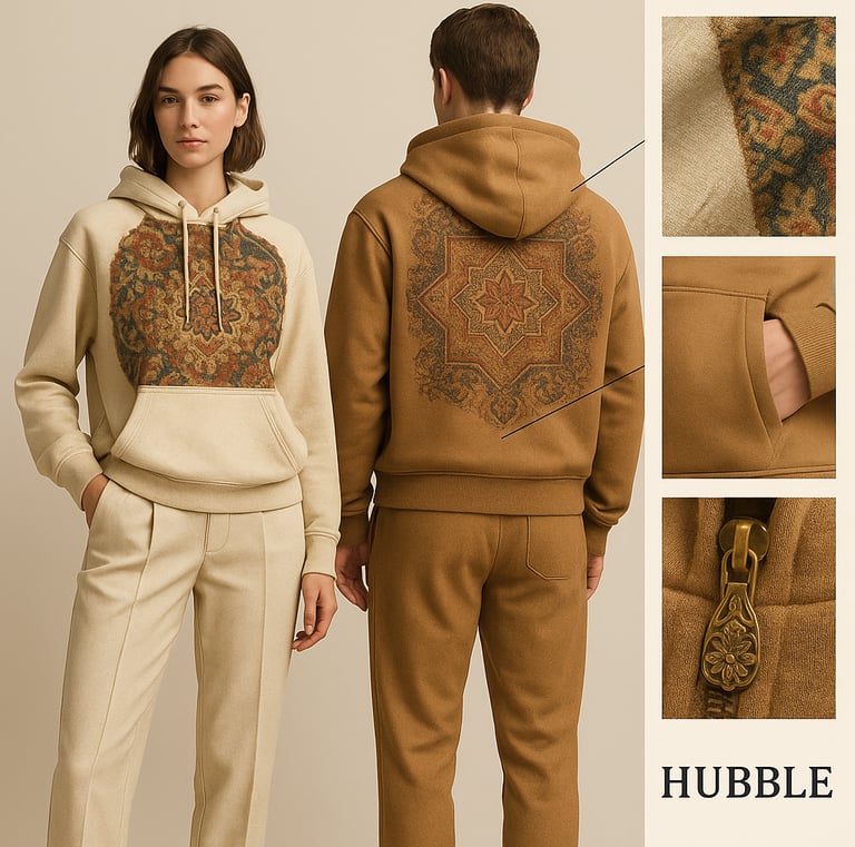 Geçmişin motifleriyle bugünün çizgilerini buluşturan bu seri, Hubble’ın “sanatla dokunmuş kalite” anlayışını yansıtır.